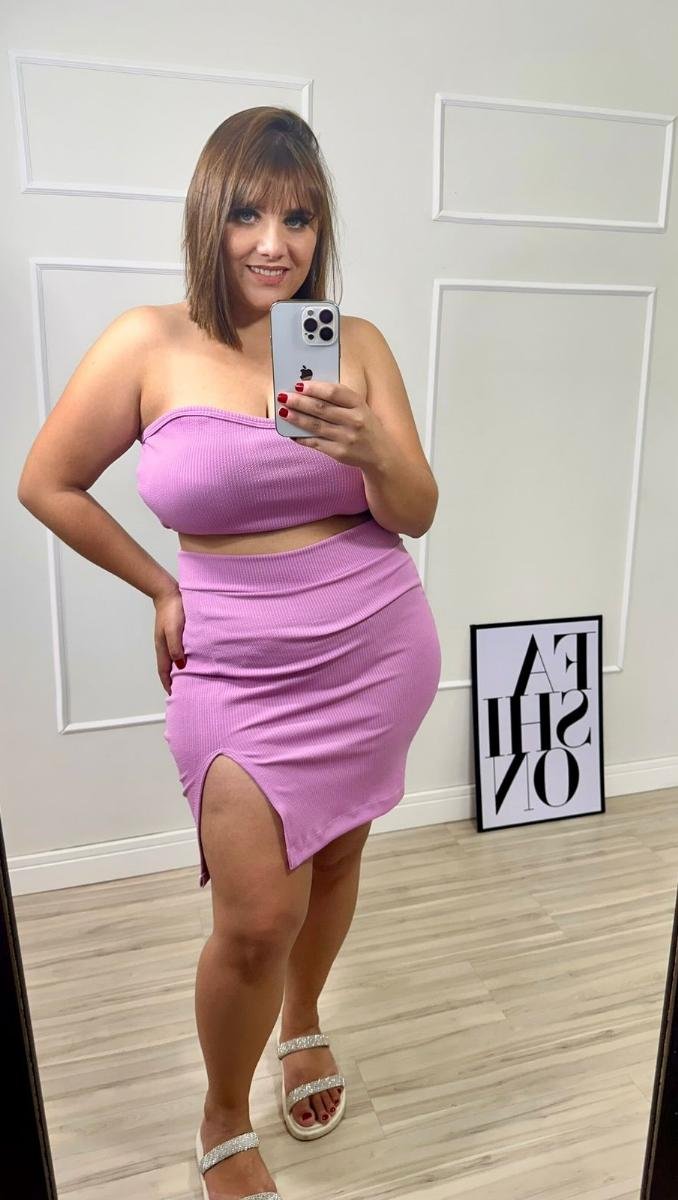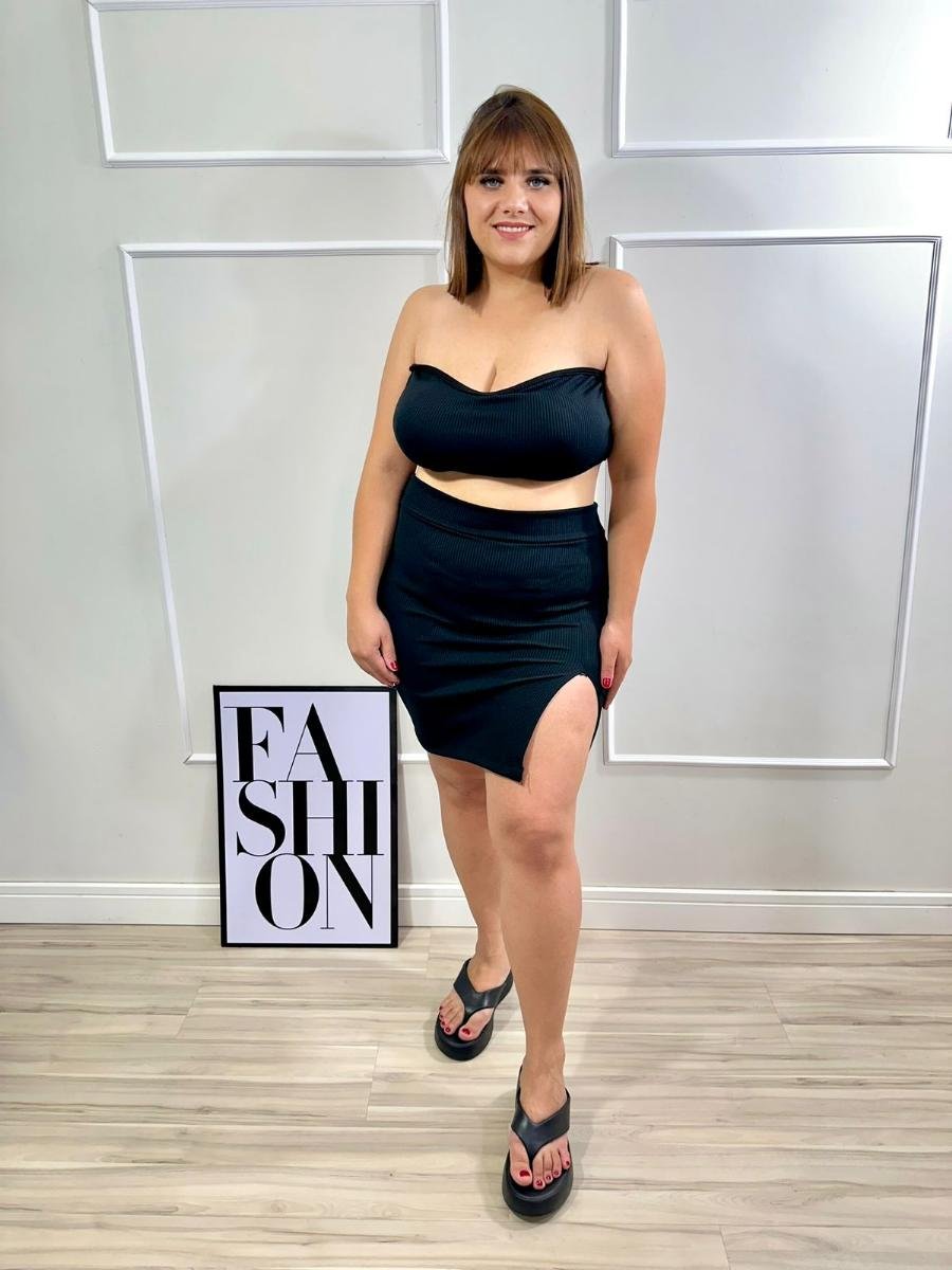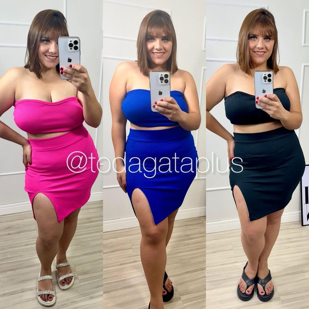 Conjunto no tecido canelado anarruga, tecido com bastante elastano, não fica transparente, possui bojo.