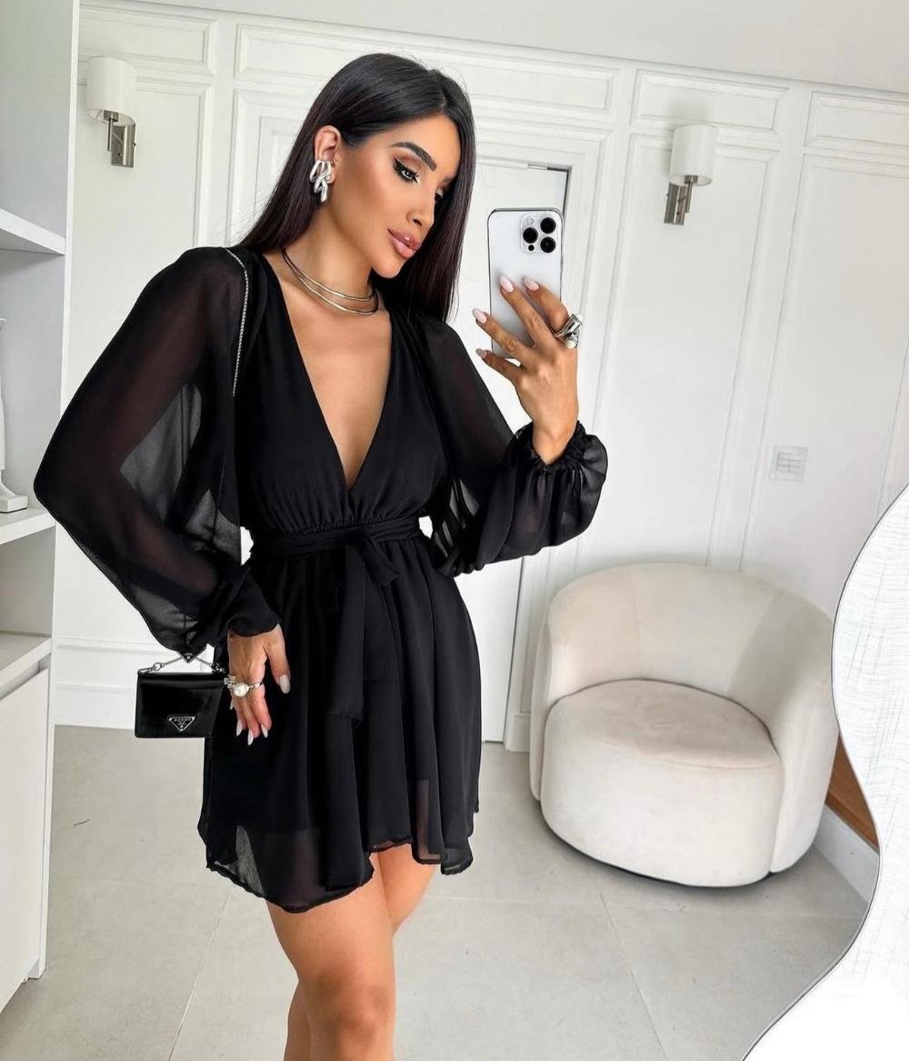 Vestido macaquinho no tecido chifon, com forro no busto, modelo em shorts por baixo, acompanha tira de amarração e não possui bojo.