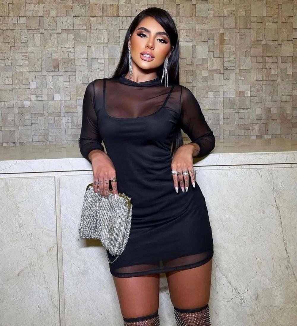 Vestido no tecido tule, com elastano, acompanha vestido de alcinha pra usar por baixo, não possui bojo.